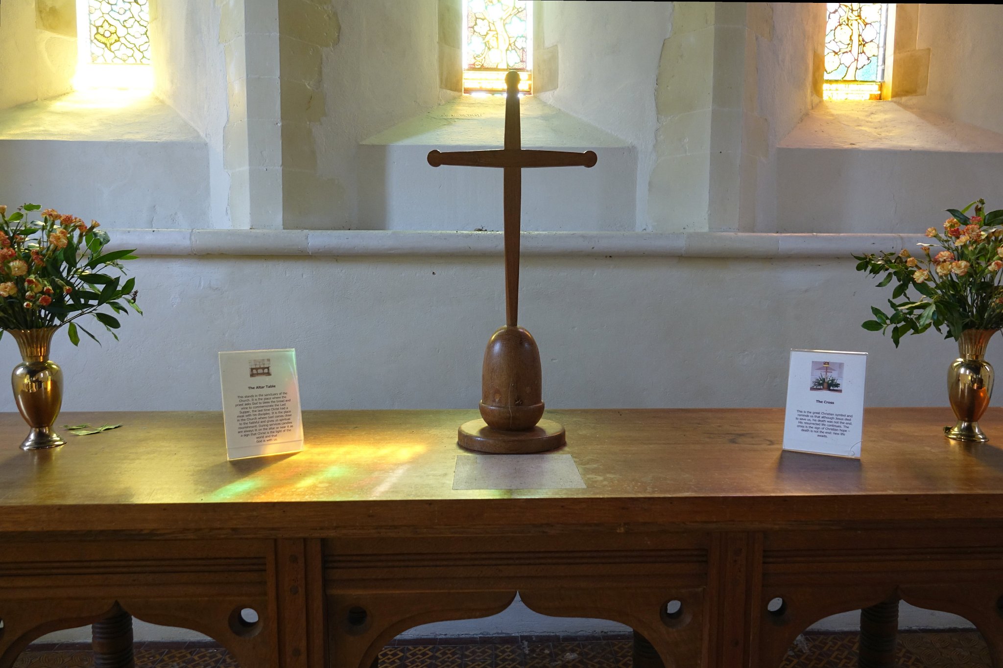 The Acorn Cross was carved by a local worshipper. It is made from an oak gatepost and symbolises the emergence of Broxted Church as a centre for commemorating hostages across the world.