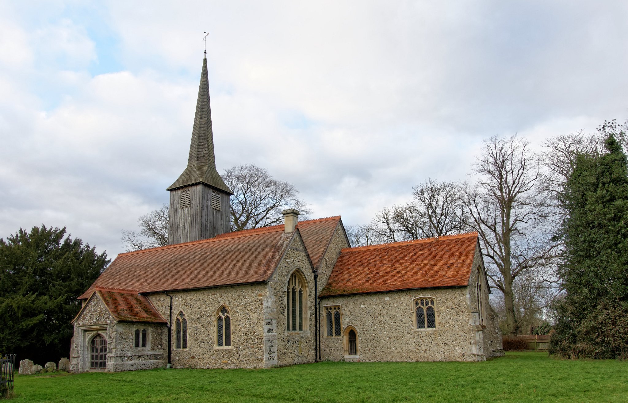 The nave was built around 1200, and the chancel some 30 years later, although there is evidence that a smaller arch to a structure existed before this, notably before the Norman invasion. Additional features such as doors and aisles were added in the 14th century. A fire in 1885 led to a major restoration by Frederick Chancellor, including a new timber tower and spire, new west wall, and south facing aisle roof.
