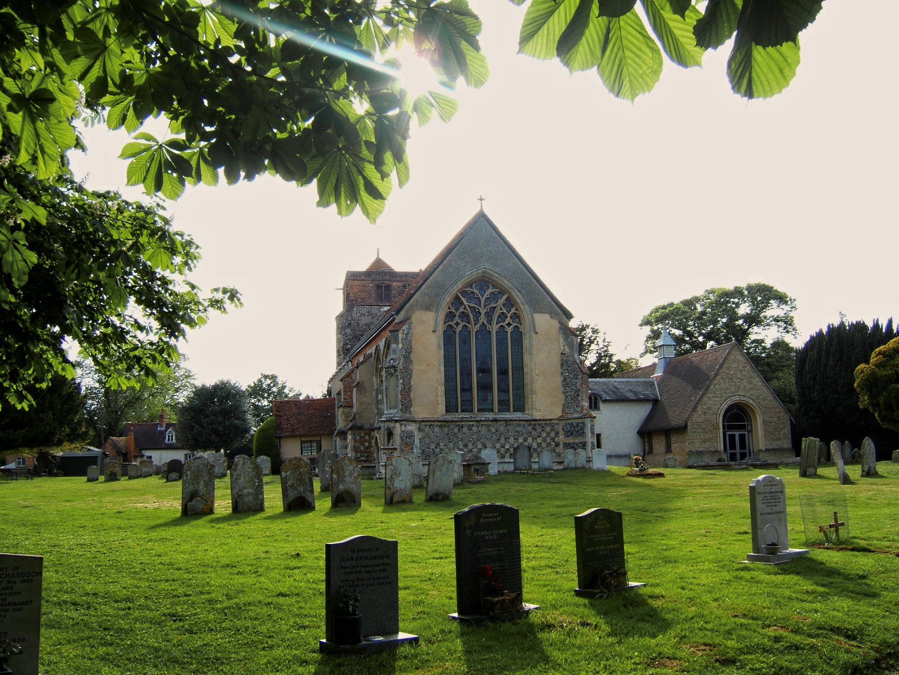 This nave, chance, south porch and tower of this parish church was built in the mid 14th century althougn the tower was extensively altered in the the 16th and 17th centuries, and later. The north aisle was built in 1826. The fabric consists of flint, rubble, septaria and brick, limestone dressings. The red tiled roof has diamond patterning and pierced ridge tiles and a cross on the gable.The large east window is a 19th/20th century replacement.