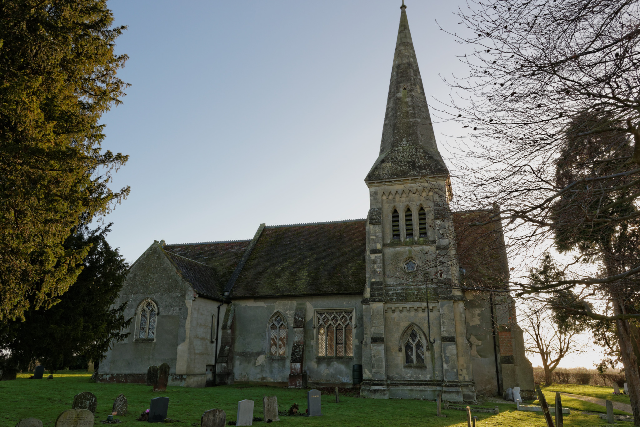 This odd church has been much altered over the centuries. The Norman twelfth century nave has four 14th century windows, one with two and one with four trefoiled lights. The tower arch, tower and steeple are Victorian, added in 1856 by Rev. C.L. Smith in his own unique style. The west windows and chancel are also Victorian. The north vestry and vault were added in 1795. Internally, there is a 14th century rood screen and two 16th century brasses, but the rest of the interior is all Rev Smith's work.