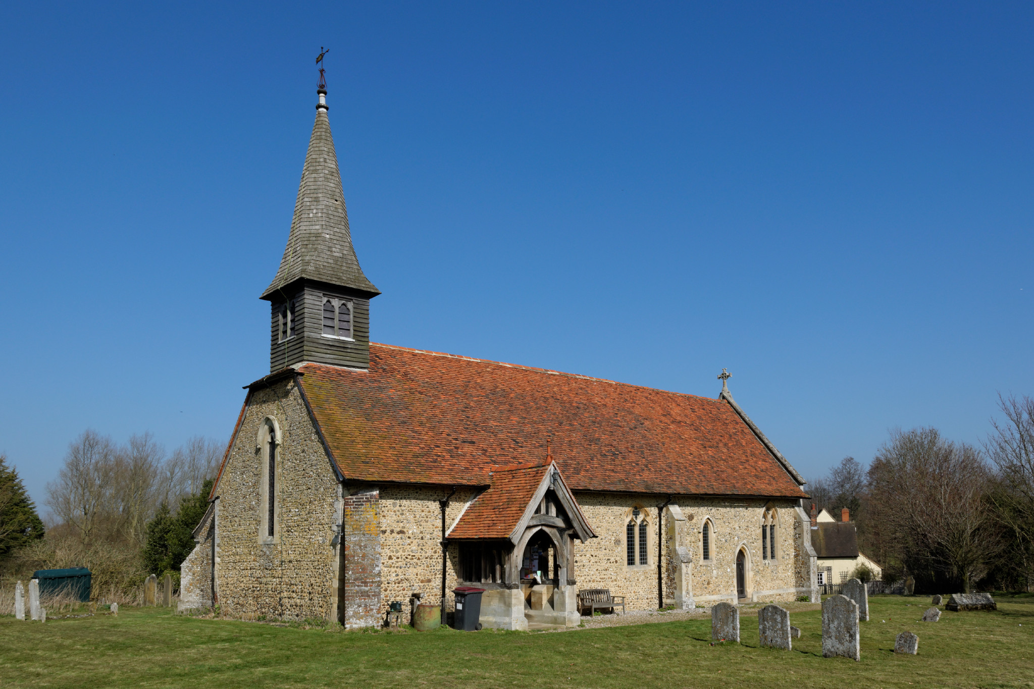 The nave was built in the early 12th century, and the chancel was added or rebuilt in the 13th century. It was sensibly restored in 1895 by A Y Nutt, who rebuilt the east wall and the south porch and added the vestry.