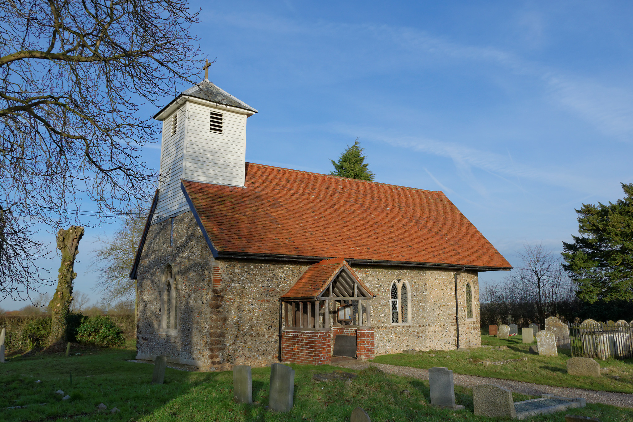 Built around 1130, the church consists of a single cell nave and chancel with an apsidal end. The roof is believed to be early 13th century, the tower 15th century and the porch 19th century. The roof was thatched at one time, but church records report that some tiles were blown off in 1594 so the thatch must have been replaced by tiles before that date. This tiny Grade I lised church contains a series of medieval wall paintings depicting The Passion.