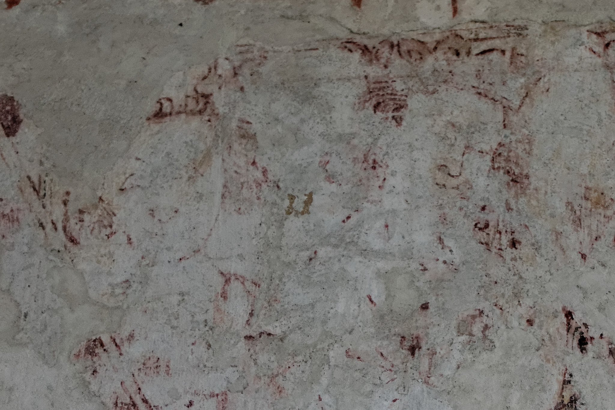 Detail from "The Three Living and The Three Dead", painted c.1310. A well known story in medieval times tells of three princes who go hawking. While they are out they meet three skeletons who urge them to reform thir ways by reminding the princes of their mortality.. This fragment depicts two of the three princes. The skeleton figures were lost following the enlargement of a window in c.1320.