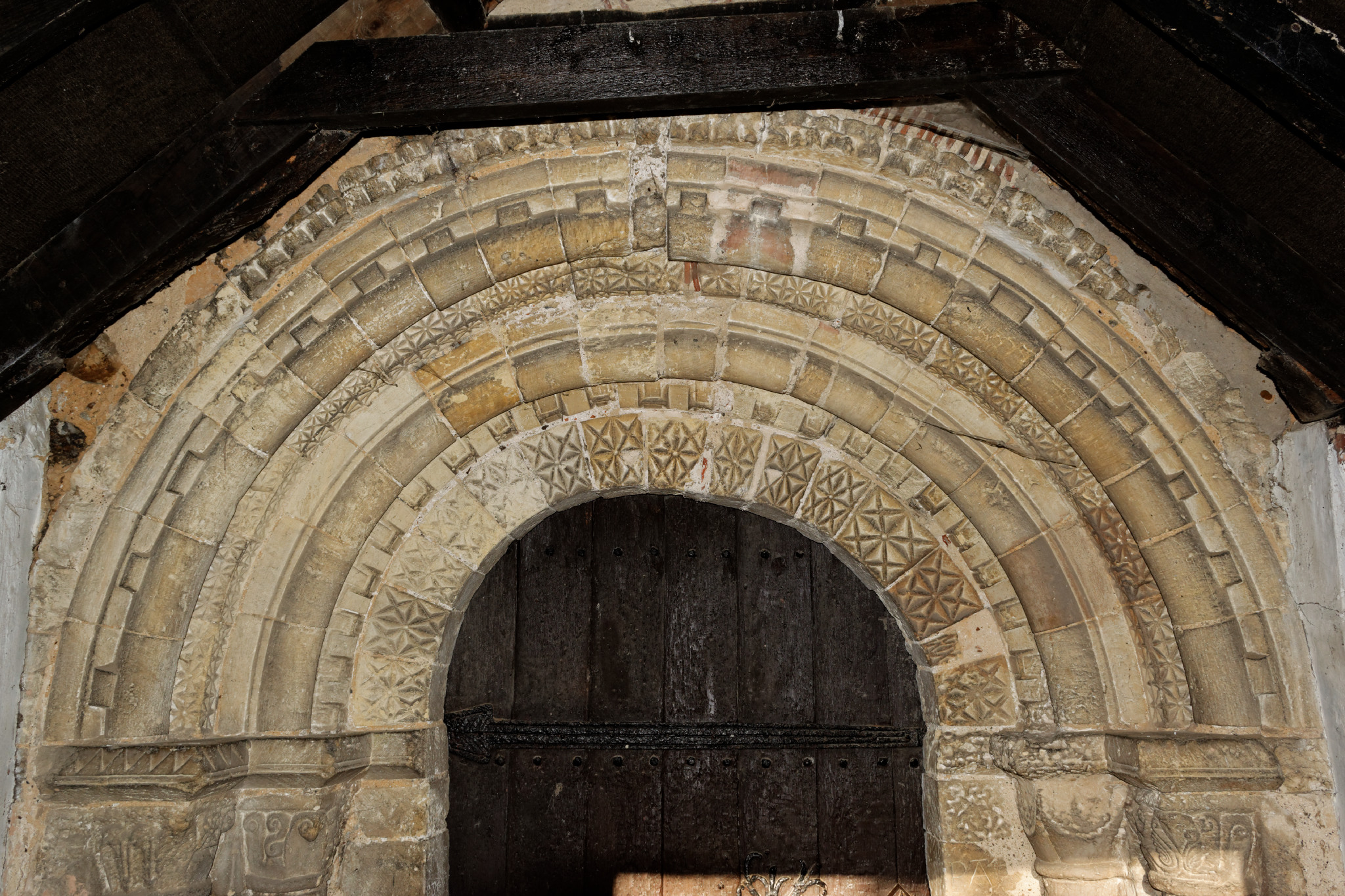 The Norman south doorway is magnificently carved and dates from 1160. The door itself is also Norman, held together with hand made iron nails and metalwork, and with a large sanctuary knocker which could be grasped by those wishing to use the church as a place of refuge.