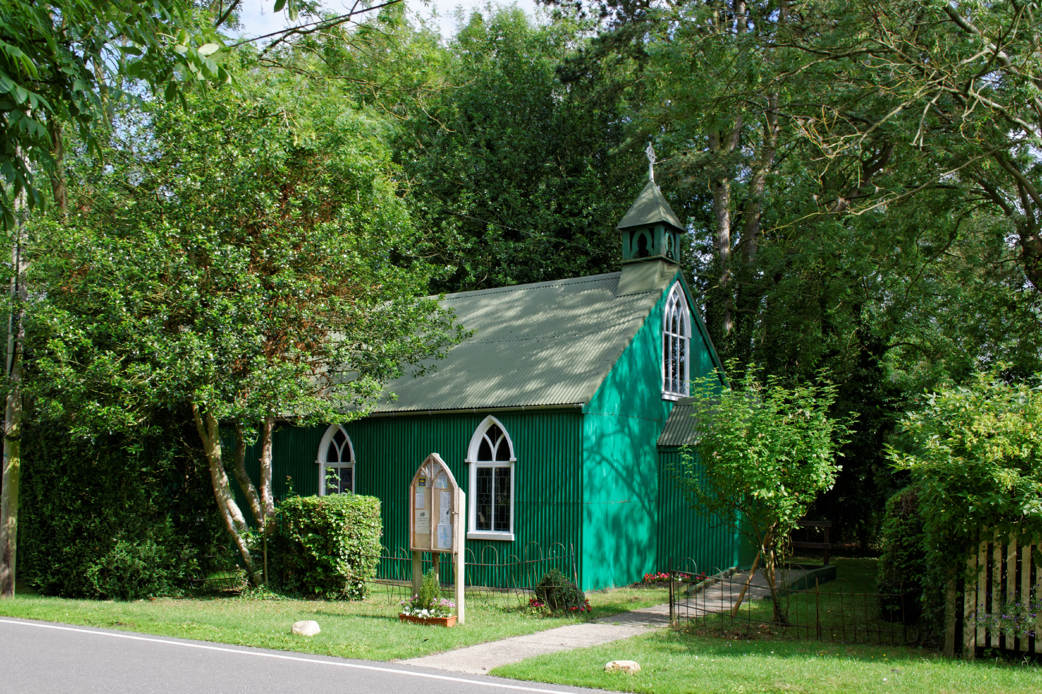 A 'Tin Tabernacle', built in 1885. The interior is wood lined.