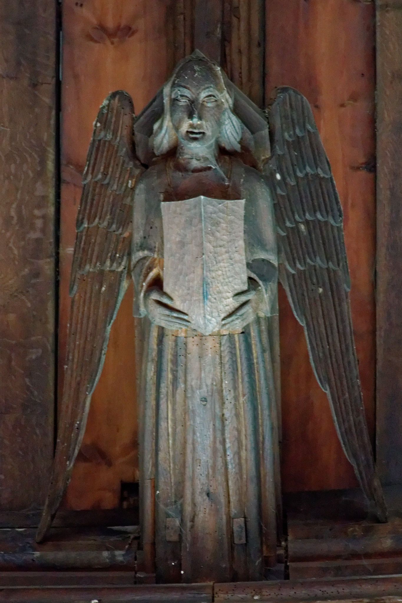 One of the 15th century roof angels watching over the congregation in St Mary's nave.