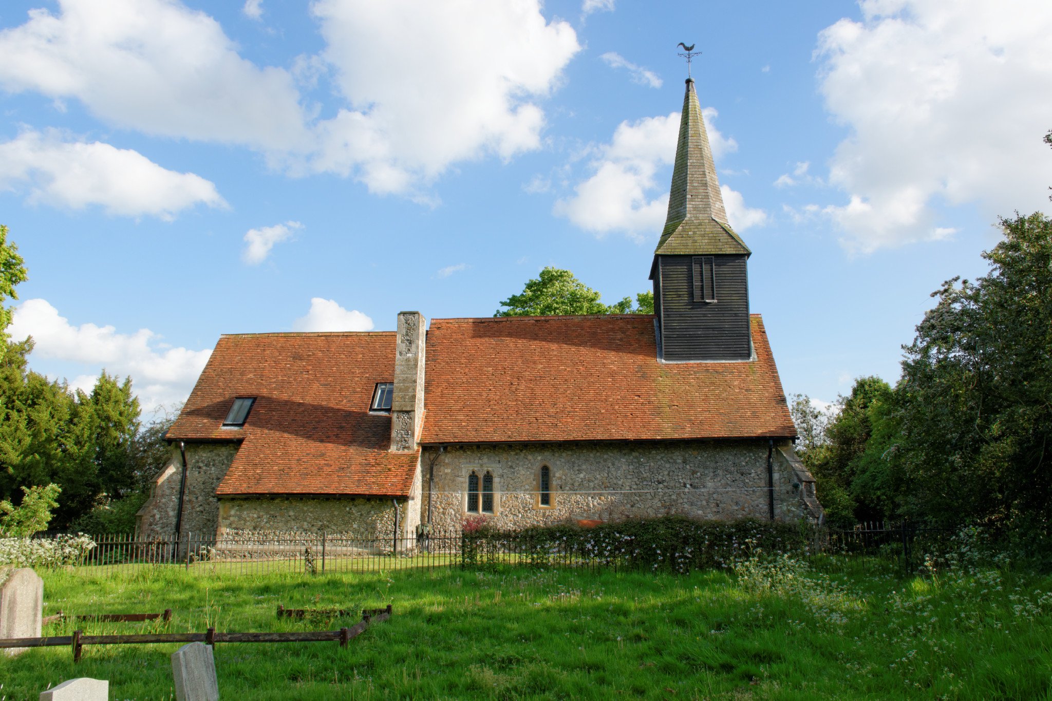 Apart from the bell tower and broach spine the church was entirely rebuilt in 1871 in random stone and flint, with a tiled roof. Some of the features of the original 15th century church are incorporated in the rebuilding. The frame of the bell tower is 15th century, weatherboarded and surmounted by a shingled broach spire. Grade II listed.