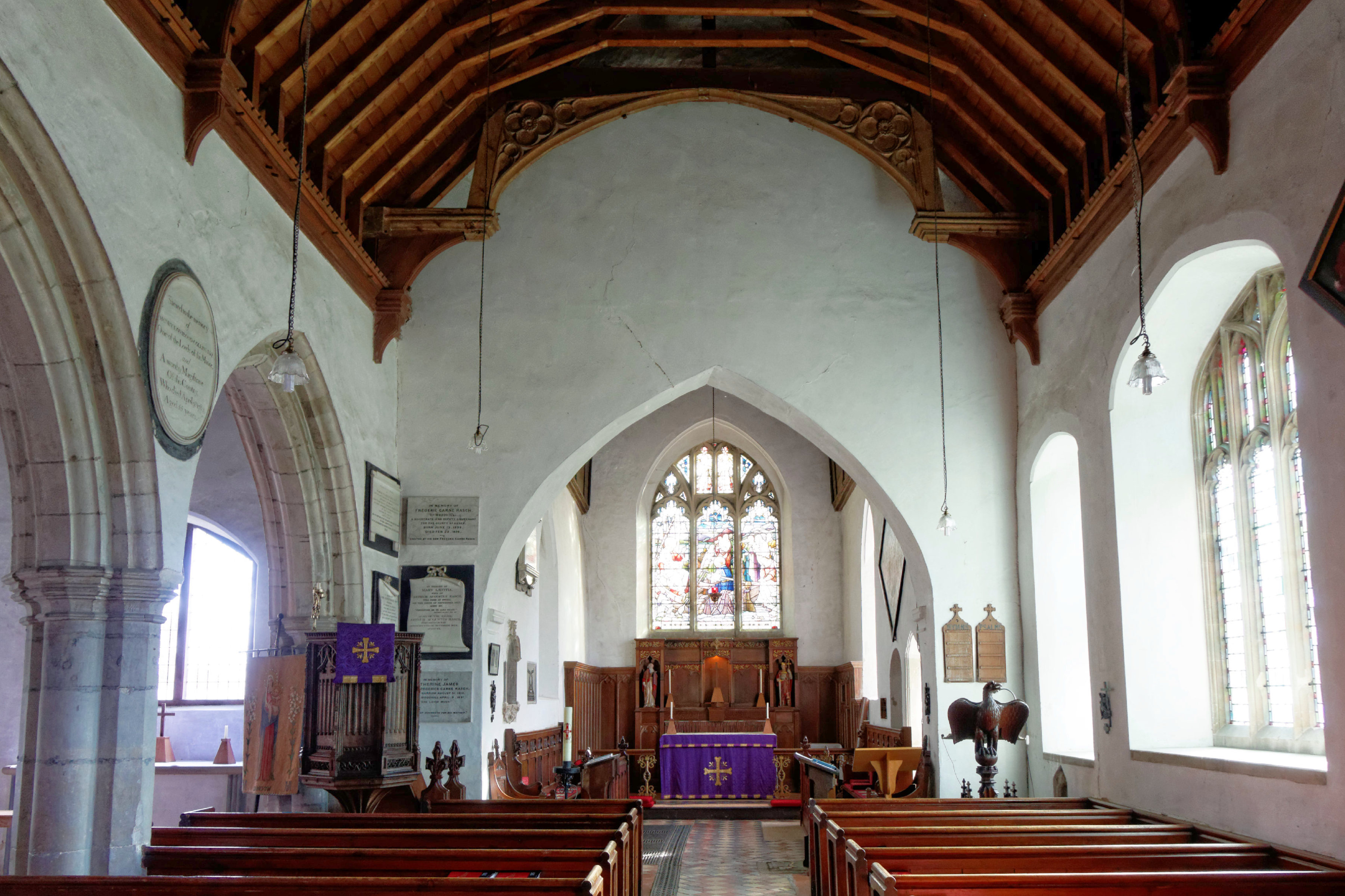 The north aisle was added in the 14th century. The elegant three-bay arcade has shafts which are polygonal to the north and south, and semi-circular to the east and west. The nave was given a hammerbeam roof in the 15th century, which was replaced in Victorian times. A single truss with richly carved spandrels and moulded hammerbeams was retained. The plain, pointed chancel arch is 13th century.