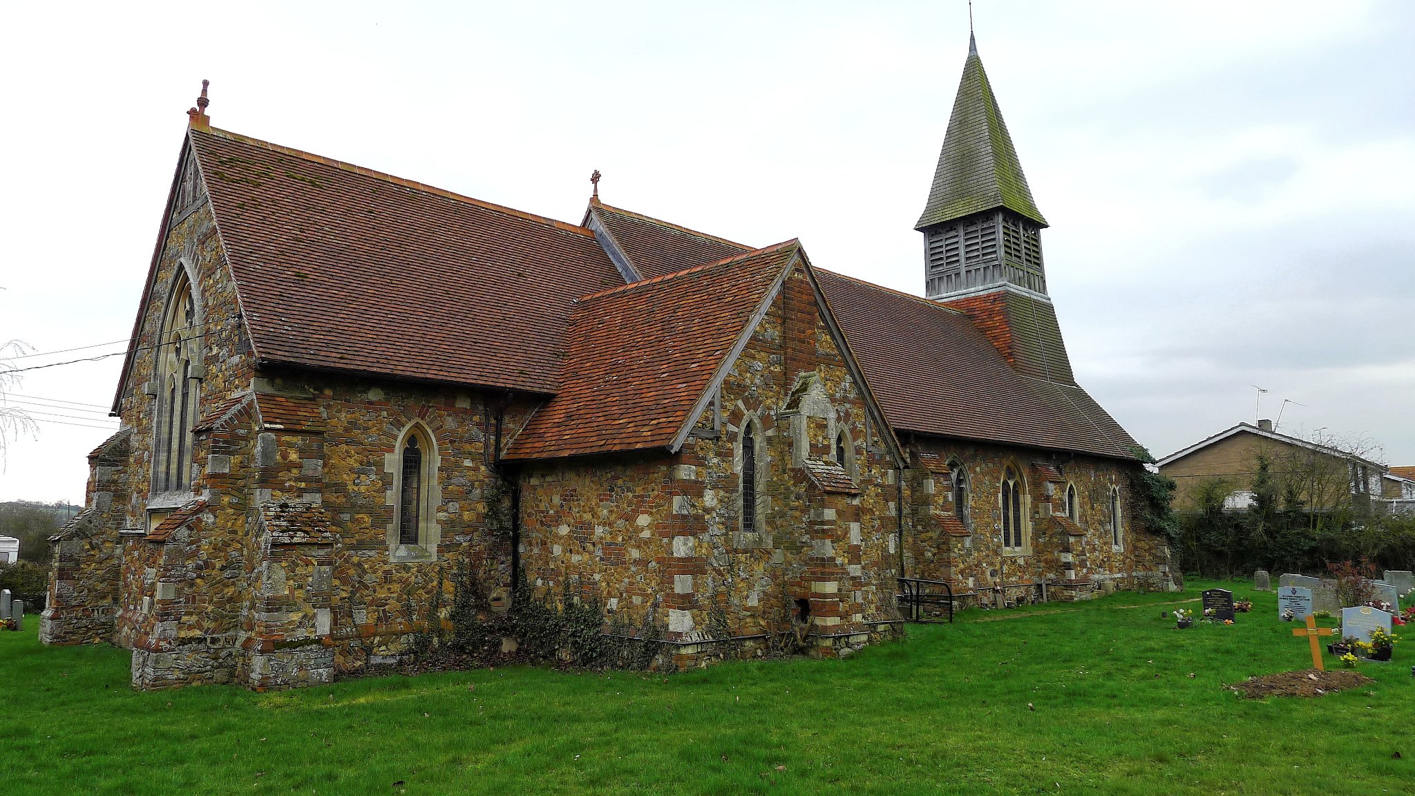The original parish church of St Lawrence in Steeple was destroyed by fire and the current church was built at a new site in the centre of the village in 1884. An old doorway and one window were reused, and the octagonal font bowl dates from the 15th century.