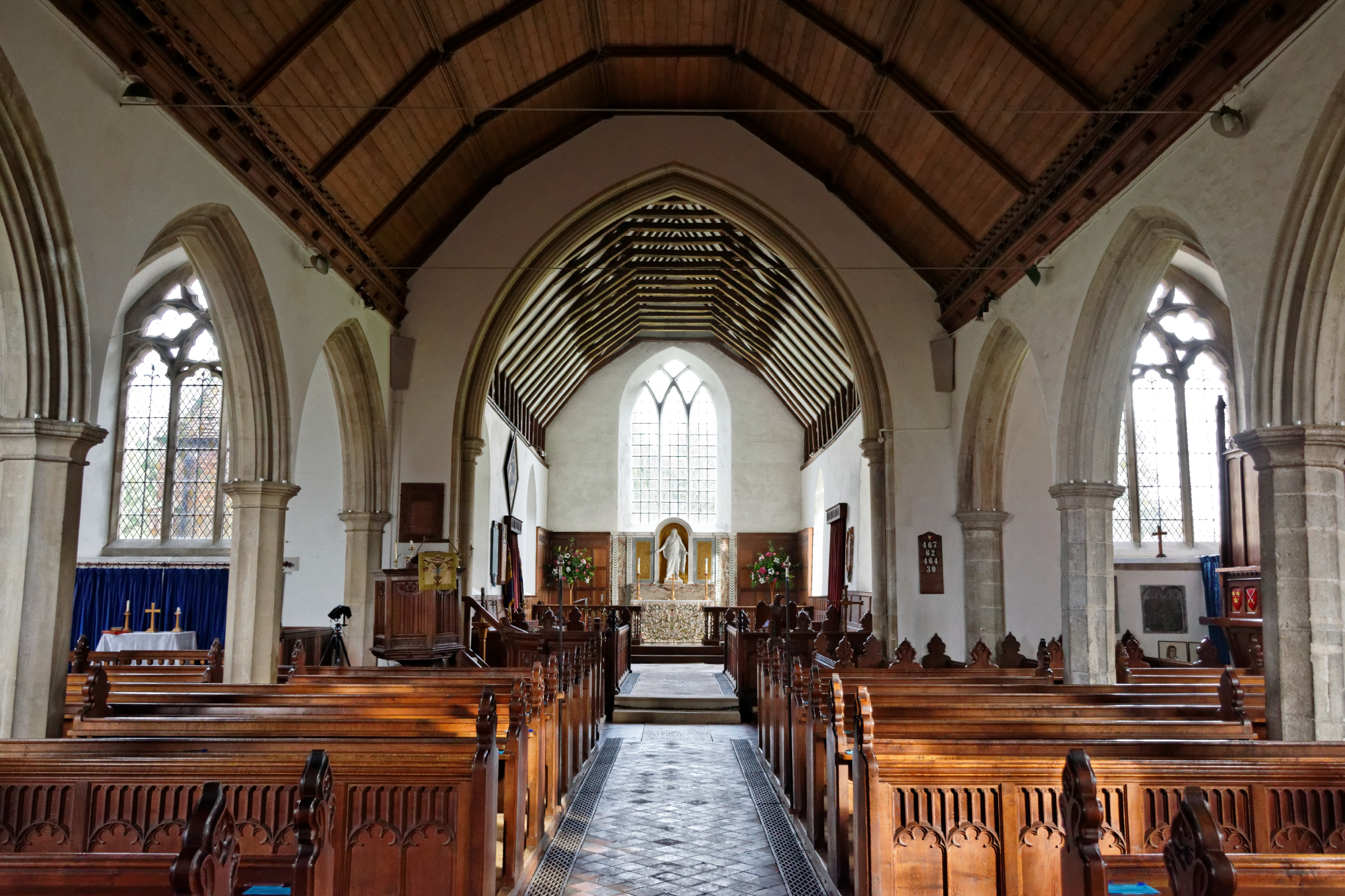 The church was restored internally in the 19th century. The four bay south aisle dates from the 15th century and has slightly wonky octagonal piers with concave sides and wave-moulded arches, copied on the Victorian north aisle without the wonkiness. The communion rail is early 18th century. The windows were renewed in 1945 following war damage.