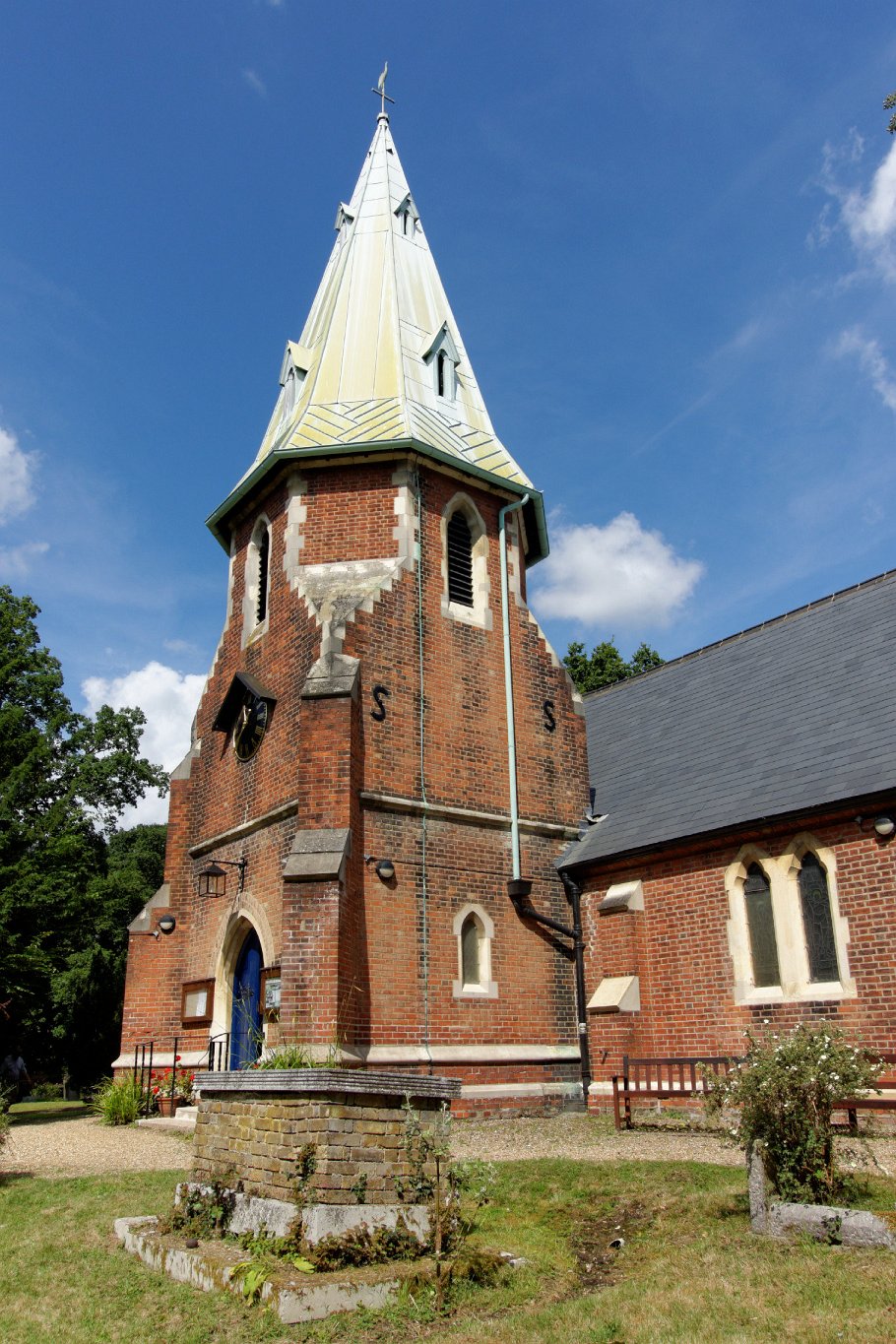 The church was designed by Sydney Smirke, and completed in 1850 to replace an earlier one on the Abdridge Road which had to be demolished. The tower is topped by a copper clad spire and contains three bells which were brought from the old church, two medieval and one Victorian.