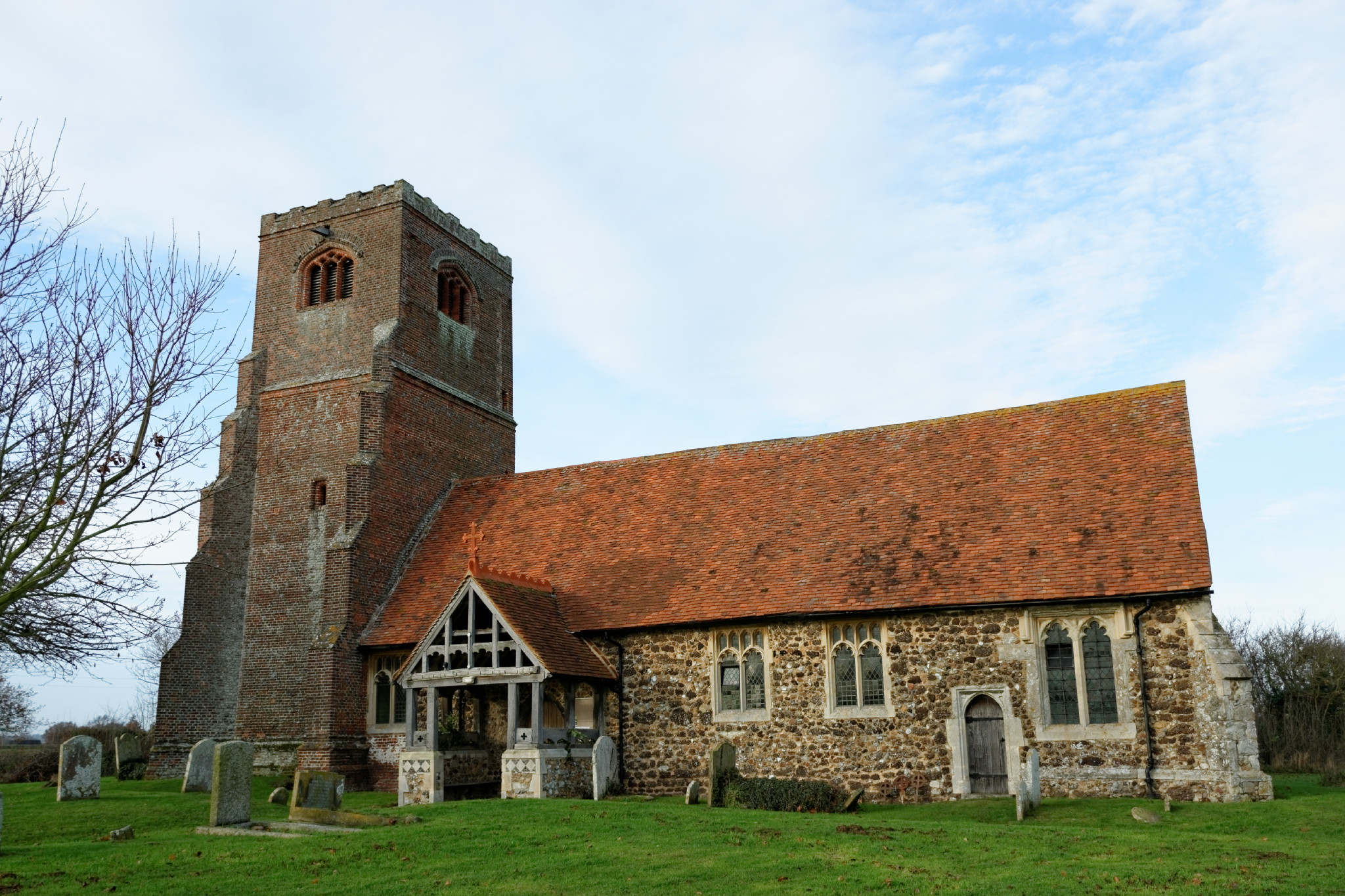 The tower was built by Sir Stephen Beckingham at the same time as the Gate House of Beckingham Hall (situated about 200 yards north east of the church). It is built of red Tudor bricks with blue brick diapering.