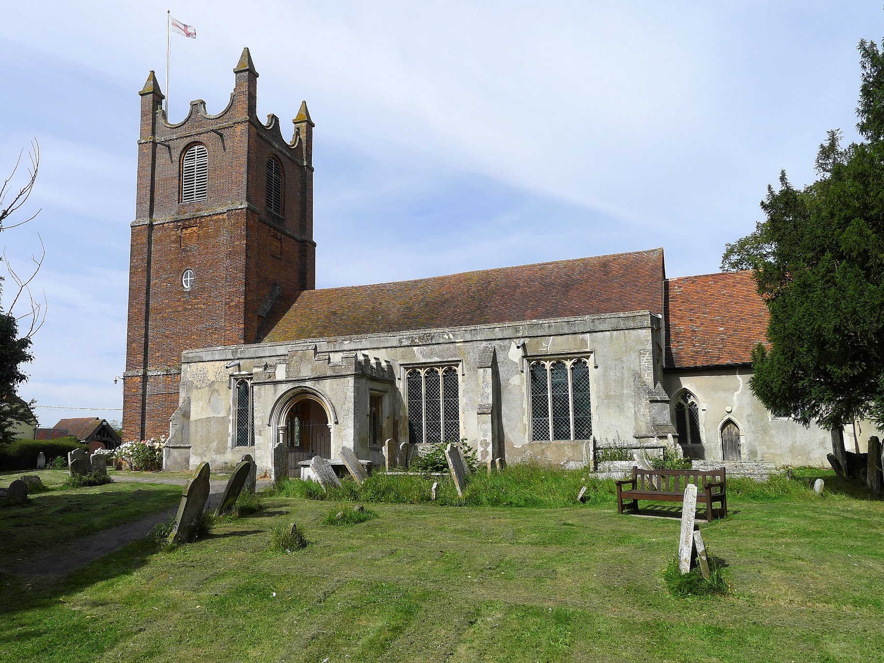 This Grade I listed building dates mainly from the fourteenth century, with later additions. The south aisle was added in around 1300. The magnificent tower was built in 1699 and there is a commemorative slab in the west wall inscribed 'To the memory of Mr. Robert Wilde late Rector of this Parish who gave 100 l. towards ye building ye steple Anno 1699', with the names of the rector, churchwarden and bricklayer. In the east window of the south aisle there is some glass still remaining from the 15th century, depicting a kneeling angel with censer, fragments of a female saint and a censing angel, probably part of the Coronation of the Virgin.