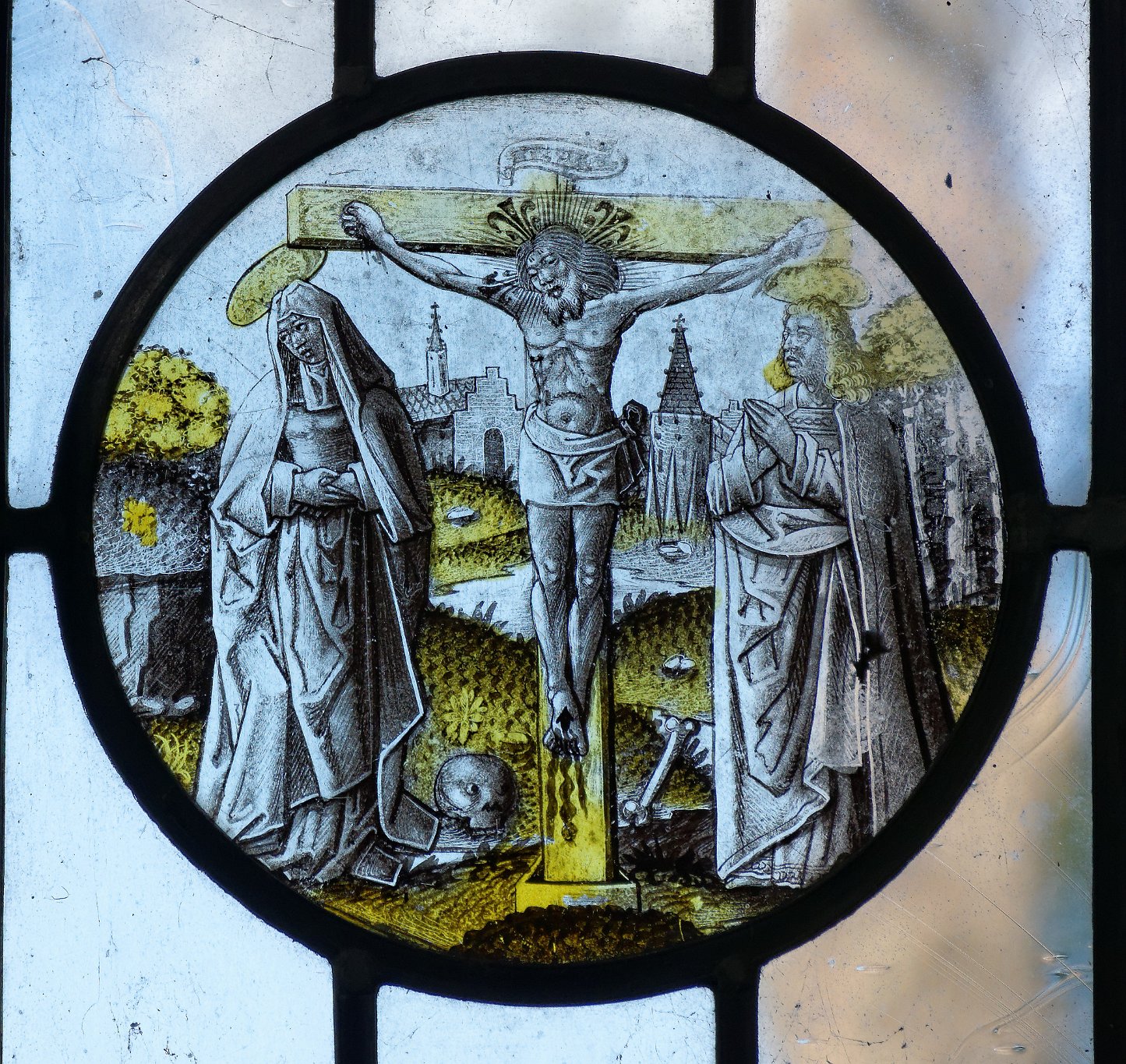Fragments of medieval and C16 Flemish stained glass were re-set in the north window of the chancel in 1986.