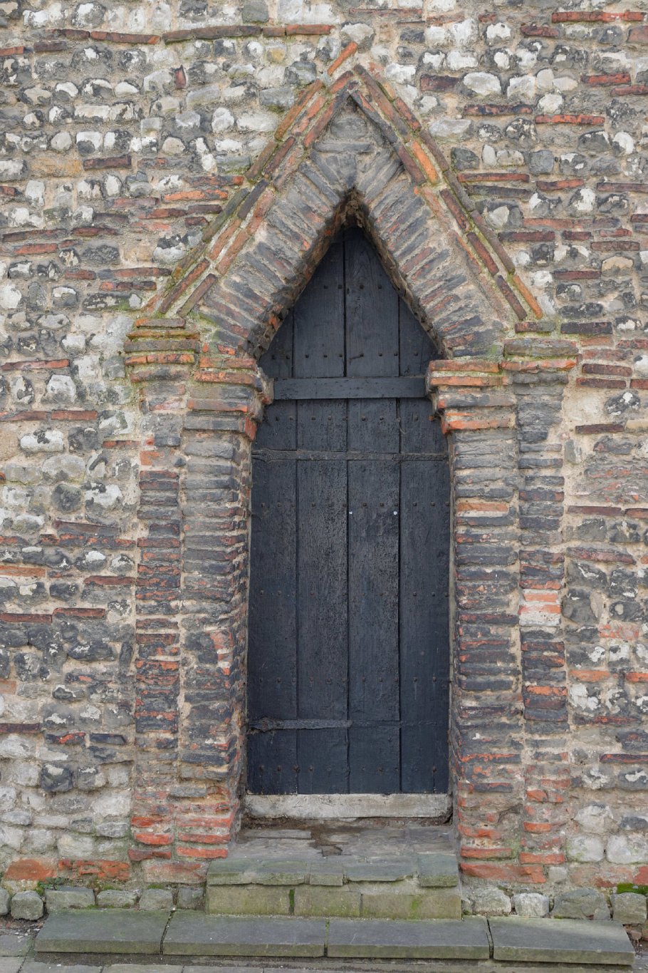 The small west doorway of the tower is Saxon and was built with Roman brick. It is a good example of 11th century brick laying, with two columns of bricks supporting a triangular head.