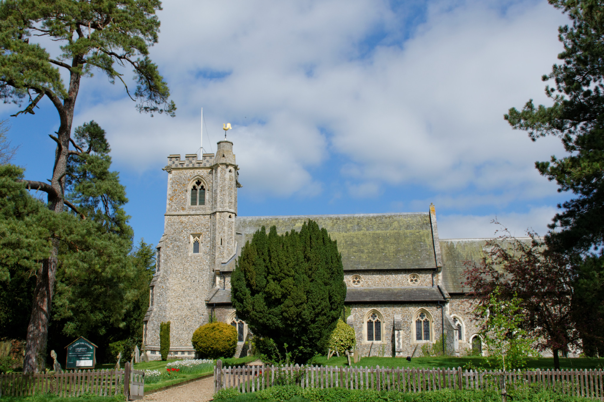 The chancel and the nave of St Mary's were built in the 13th century, while the existing tower is modern (1855) and is the third one built. The first tower was circular, but this was replaced by a square tower in the 14th century. Inside, the north wall of the chancel has a recumbent statue of the priest John Crosby who was vicar here in the mid-15th century.