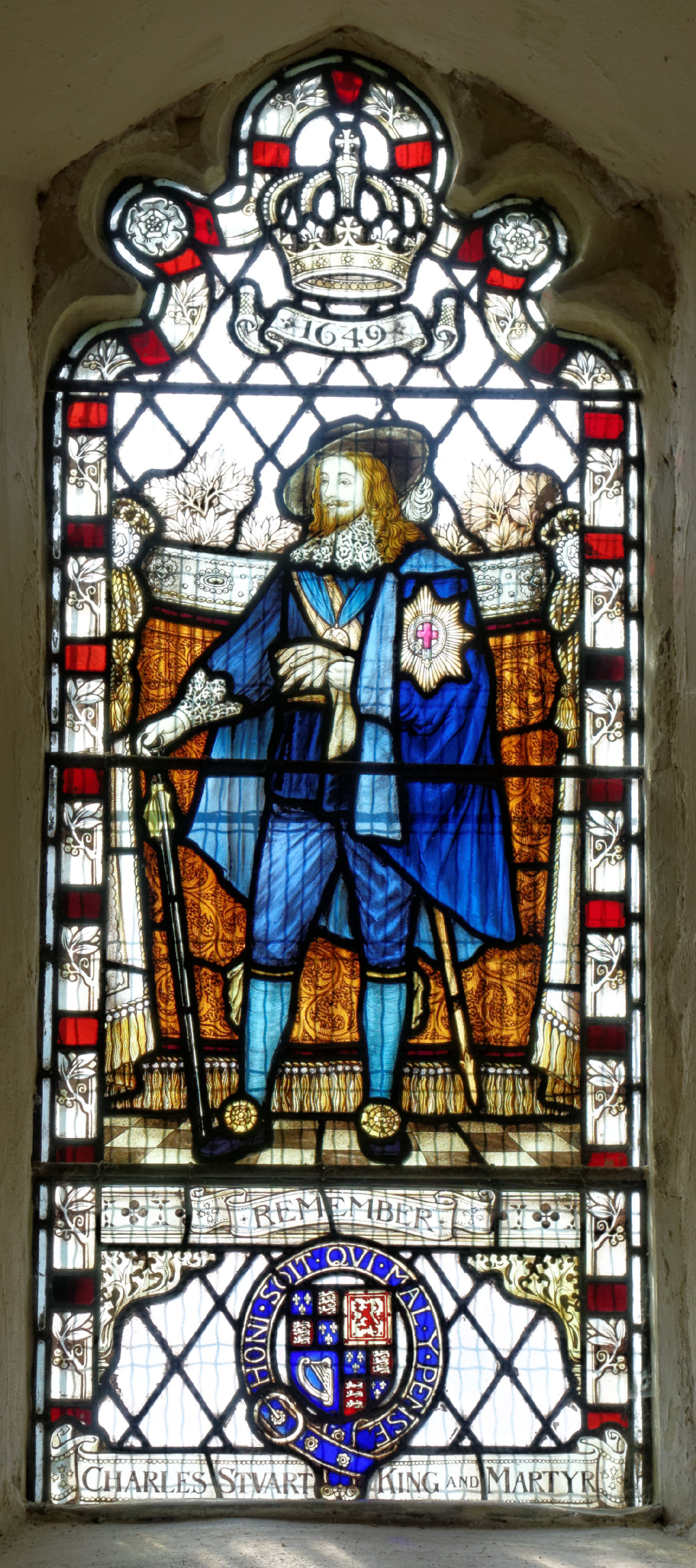 The church contains stained glass windows of King Charles II and Archbishop William Laud. They were donated in memory of those local men lost in the first world war.